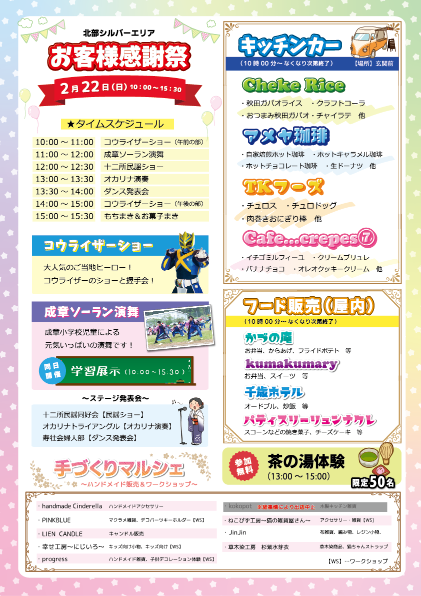 2月22日(日)お客様感謝祭開催!(2/17追記)