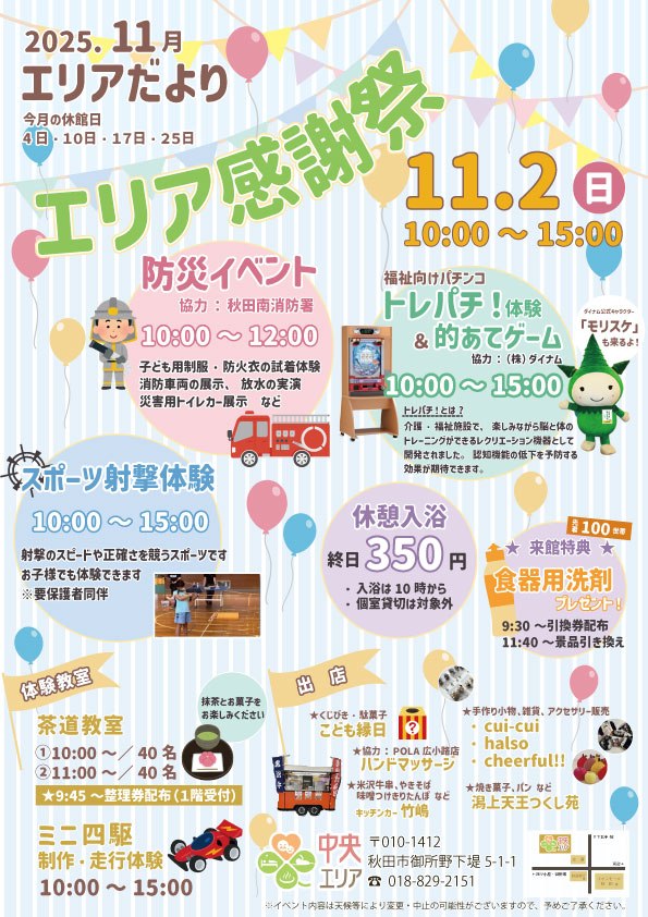 11月2日(日)に開催のエリア感謝祭で予定しておりました一部のイベントについて