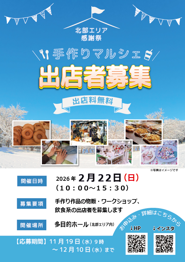 2026年2月22日(日・祝)お客様感謝祭にて行われる手作りマルシェの出店者を募集いたします